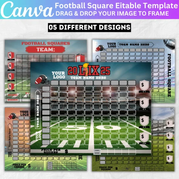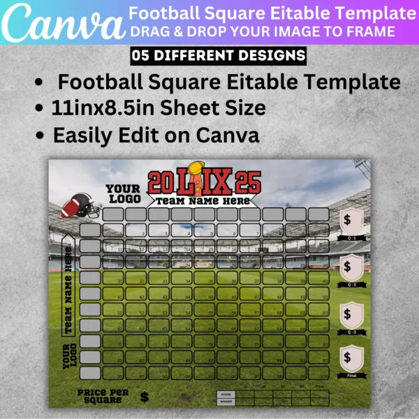 This digital download is ideal for fundraisers, game-day parties, or team events. Whether you’re hosting a Super Bowl party or a local football event, this template allows you to quickly set up a fun and professional-looking football squares game.