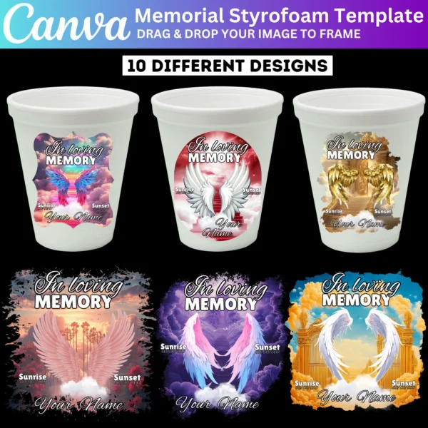 Ideal for memorial services or celebration of life events, this digital download makes it easy to print your custom designs. Whether for Styrofoam cups or shot glasses, these templates offer a meaningful way to remember a loved one while celebrating their life.