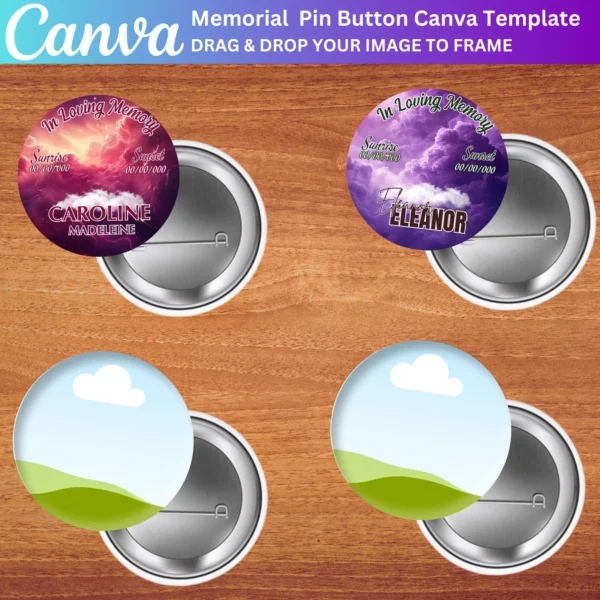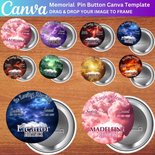 Create meaningful In Loving Memory Pin Button Templates with ease using Canva. Personalize each design with photos, quotes, and memorial details. Perfect for creating custom pin buttons for funeral favors, memorial services, or as a keepsake for loved ones.