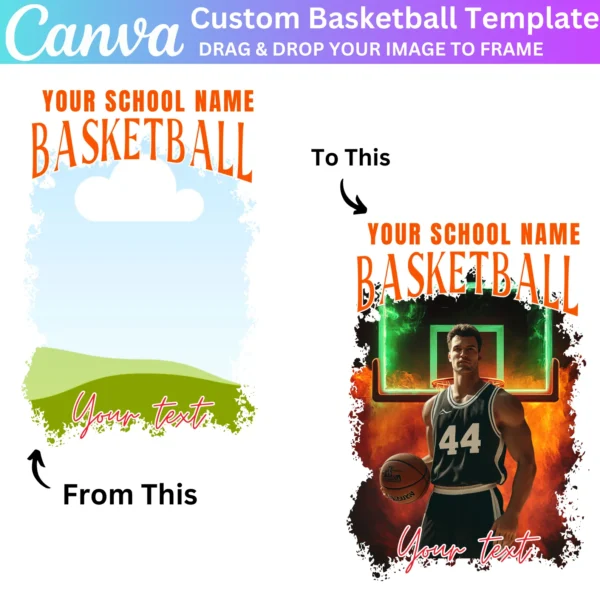 This Sports Frame Editable Template is ideal for coaches, players, and fans to create personalized gifts, event posters, and memorabilia. Instant digital download lets you quickly customize, print, or share your designs for a memorable basketball event or celebration.