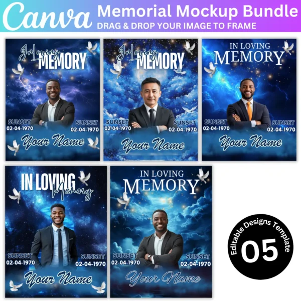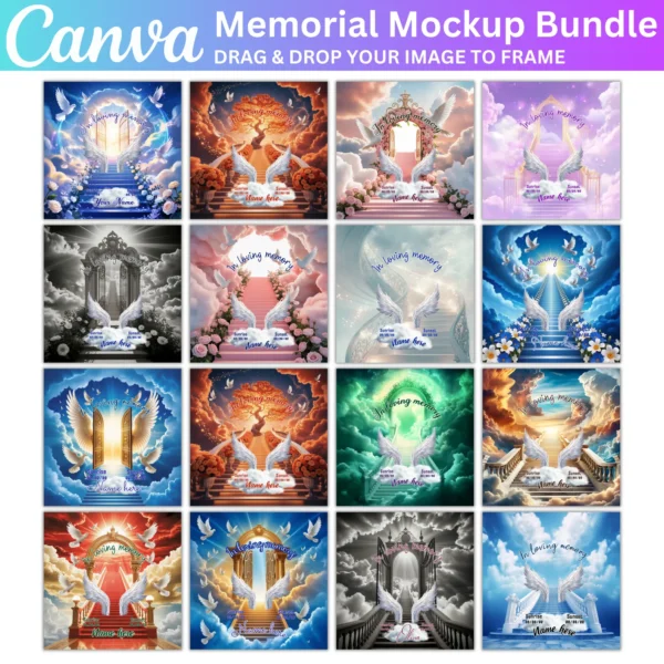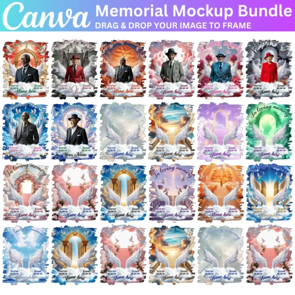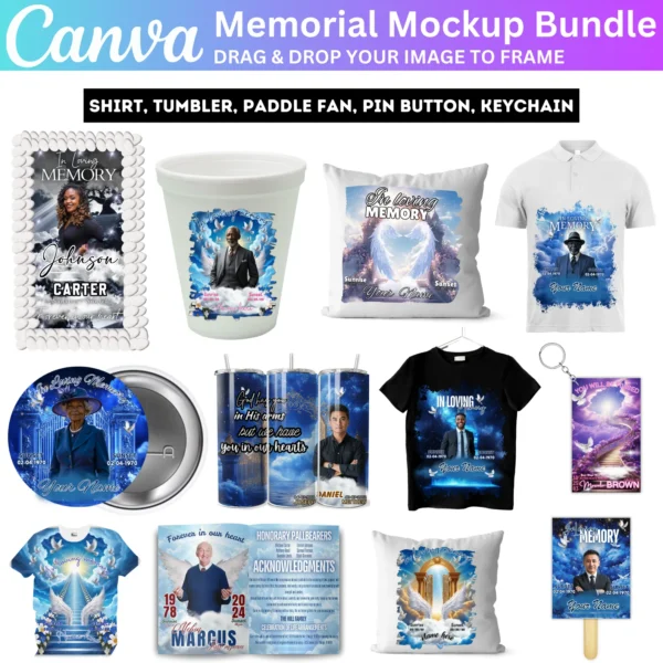 Perfect for memorial services, celebration of life events, or remembrance parties, this digital download allows you to quickly design and print custom keepsakes. Whether for shirts, keepsakes, or decorations, these templates help you create professional and heartfelt memorial items with ease.