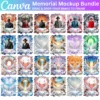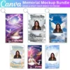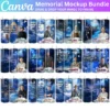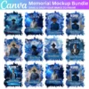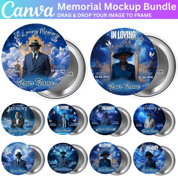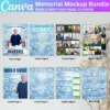 Create meaningful memorial party favors with this 150+ Blue Memorial Party Favor Canva Editable Bundle. This comprehensive collection includes memorial mockup designs, funeral pillows, grave blankets, pin buttons, ribbons, and memorial shirt templates—all easily customizable in Canva. Add photos, names, and dates to create personalized tributes that honor your loved ones.