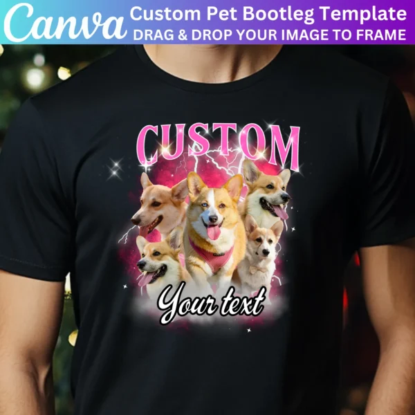 Design unique Custom Pet Bootleg Rap Tees with this Canva Editable Template. Perfect for pet lovers, personalized T-shirts, or fan merchandise. Easily customize with pet photos, text, and logos to create one-of-a-kind designs for birthday events or concerts.