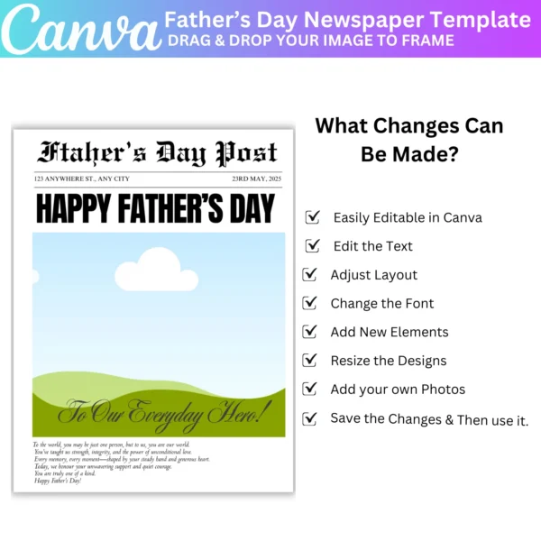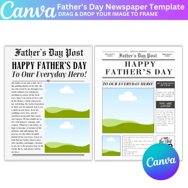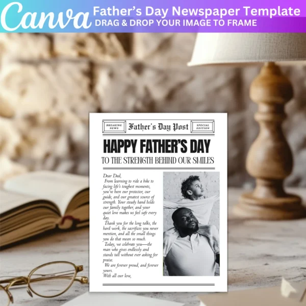 - High-resolution Father’s Day Newspaper Canva Editable Template (8.5×11 in)