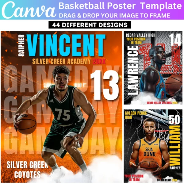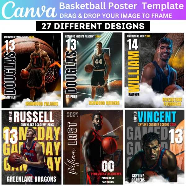 This bundle includes Sports Photography Templates and Basketball Senior Night Banners. Ideal for creating personalized posters, banners, and graphics for special events. Instant digital download allows for quick customization, printing, and sharing of your designs for any celebration.