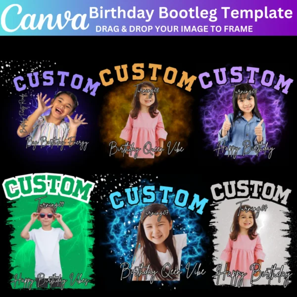 Make your kid’s birthday extra special with this Kids Birthday Bootleg Canva Editable Template. Create unique and fun birthday concert shirts, viral sublimation rap tees, and other customized birthday designs with ease. Perfect for making the party unforgettable!