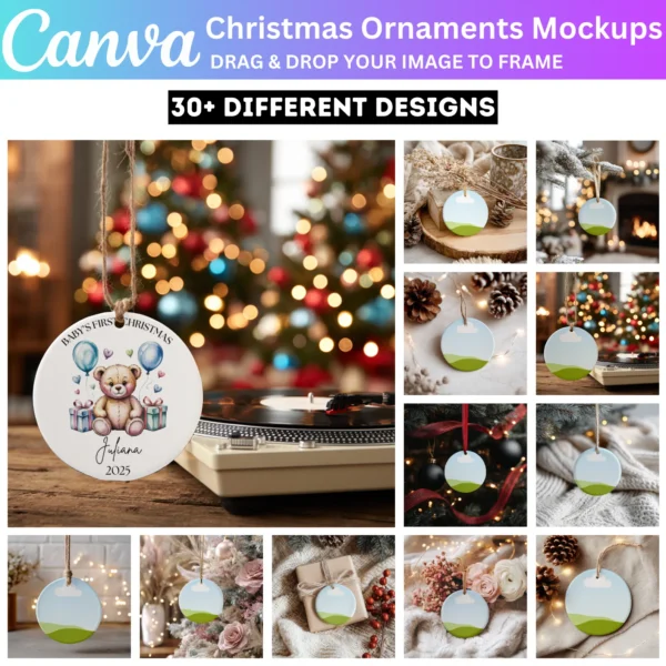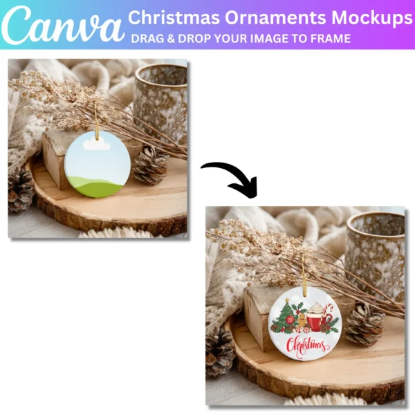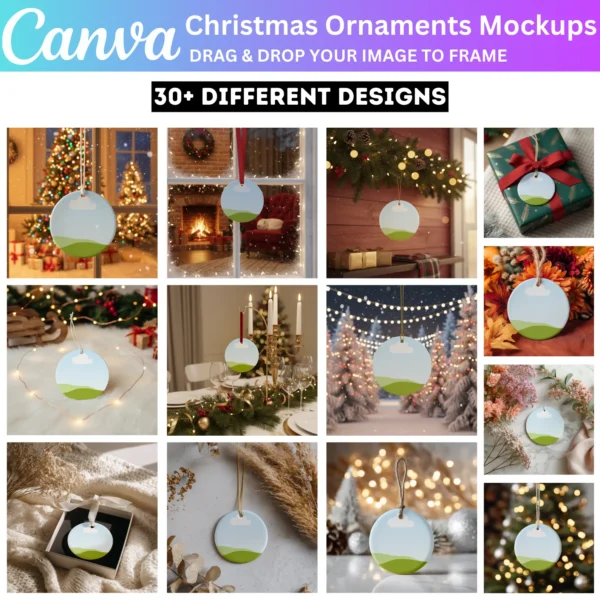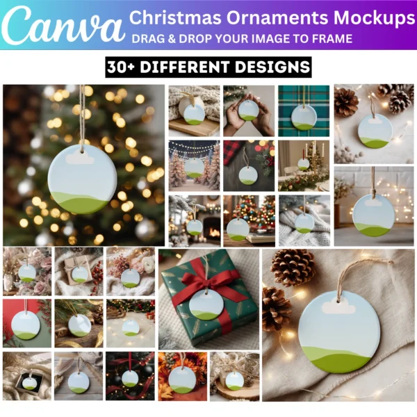 Ideal for gifts, home decor, or selling custom ornaments, these mockups help you present your designs professionally. Whether for personal use or a small business, this bundle allows you to create beautiful, high-quality visuals for the holiday season.