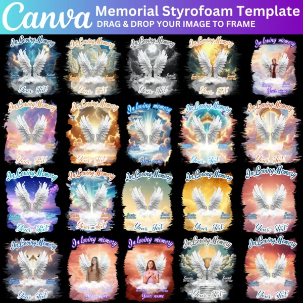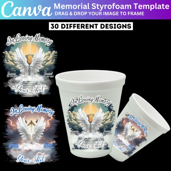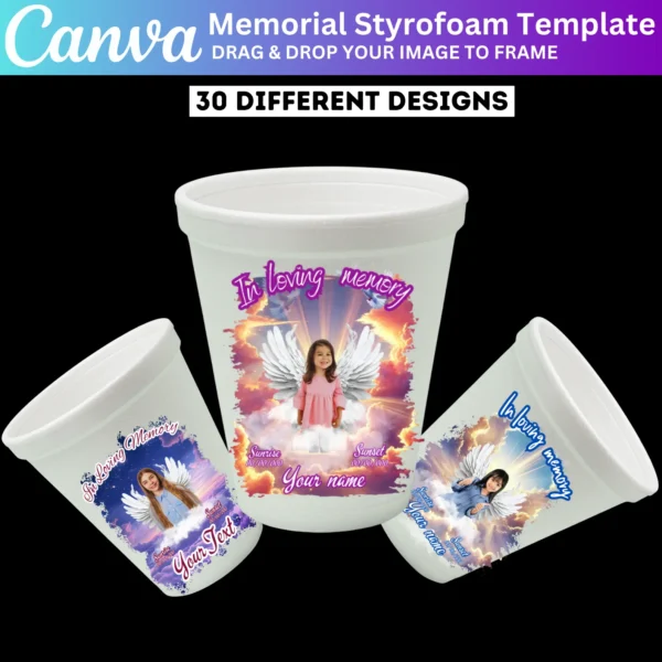 Create meaningful remembrance favors with this 30 Memorial Cup Sticker Canva Template Bundle, perfect for Styrofoam cups used at funerals, repasts, and celebration of life events. Each design is fully editable—add photos, names, dates, and heartfelt messages directly in Canva in just minutes.