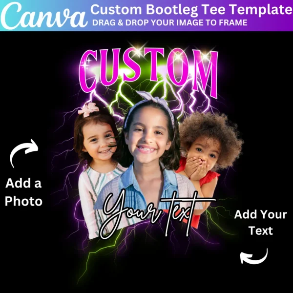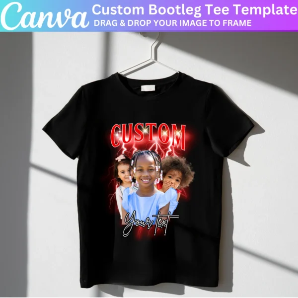 Create unique Bootleg T-shirt Designs with this Canva Editable Template. Perfect for custom birthday shirts, rap tees, and personalized designs for events. Easily drag and drop images, text, and graphics to customize your shirts for any occasion.