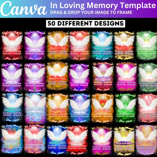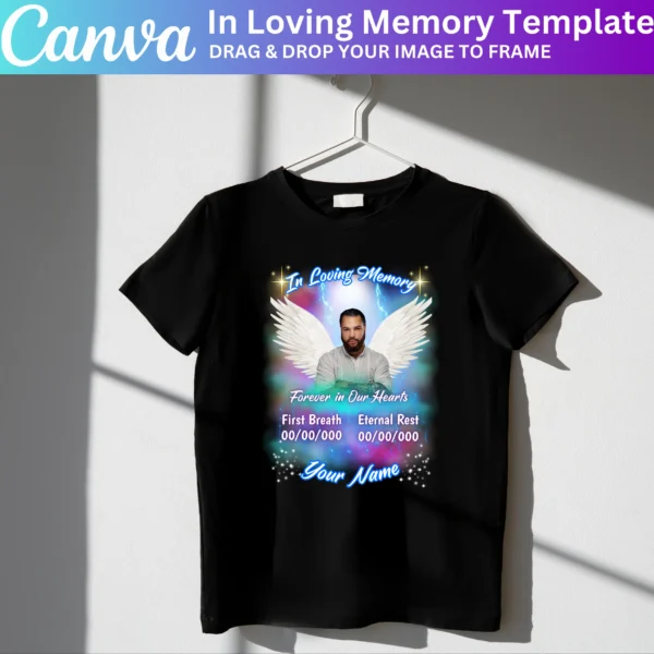 This editable Canva bundle lets you customize text, images, and graphics for heartfelt keepsakes. Perfect for printing T-shirts or digital tributes to honor someone special.