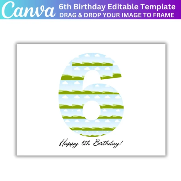 - High-resolution 6th Birthday Photo Collage Canva Template (2000×1500 px)