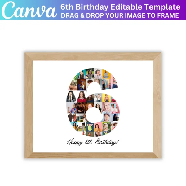 6th Birthday Photo Collage Canva Template