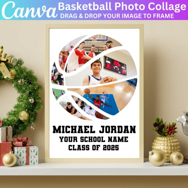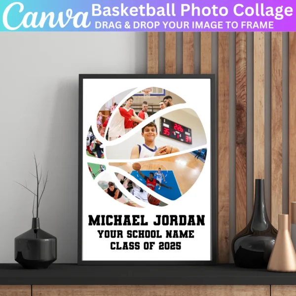 Create custom Basketball Frame Designs with this Canva Editable Template. Perfect for team photos, sports memorabilia, or custom gifts. Easily drag and drop your images, customize text, and personalize with team logos and player names using Canva’s intuitive tools.