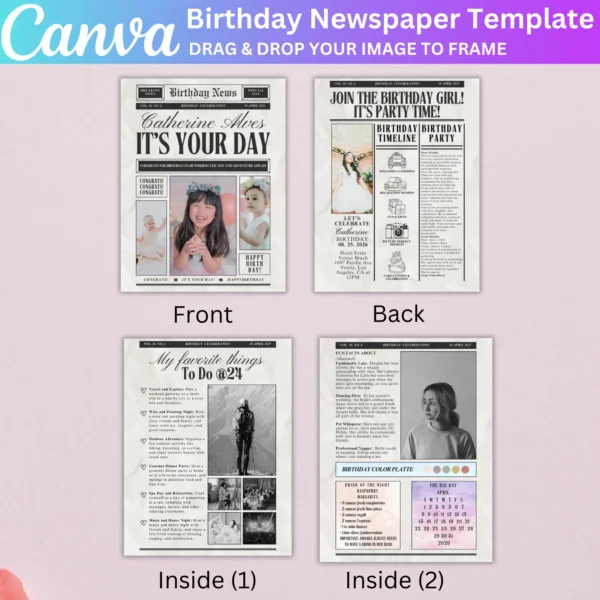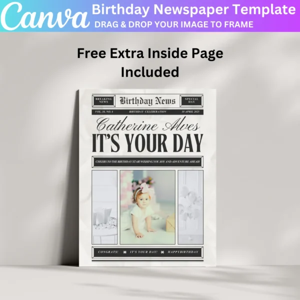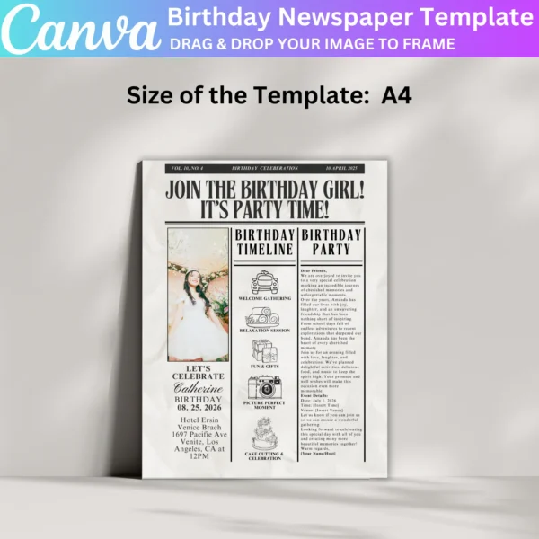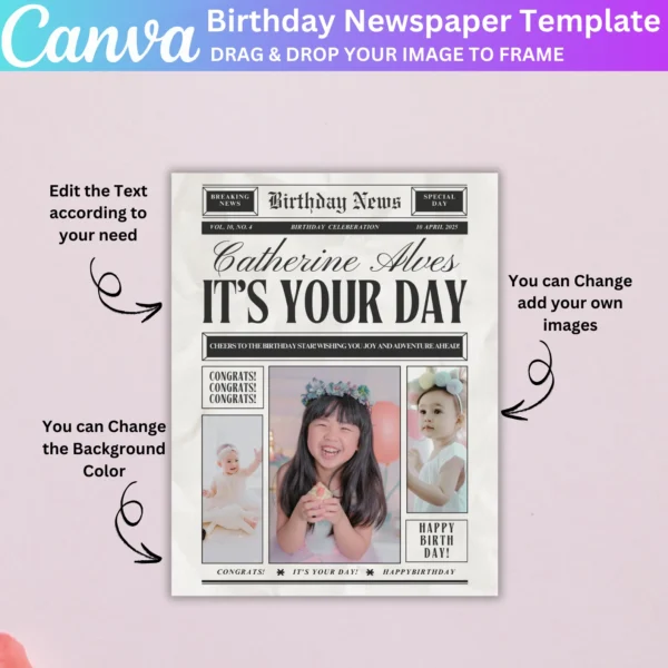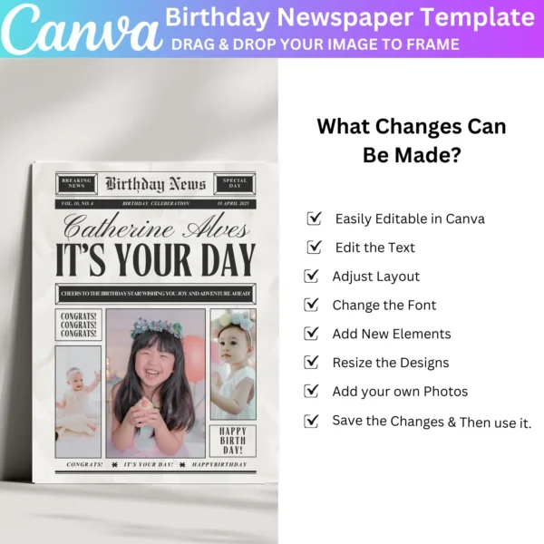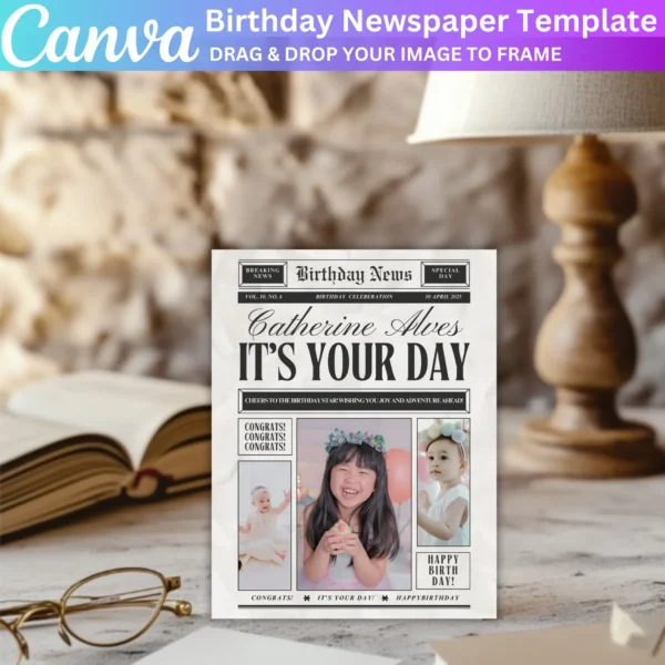 • High-resolution Birthday Newspaper Canva Editable Template (8.5×11 px)