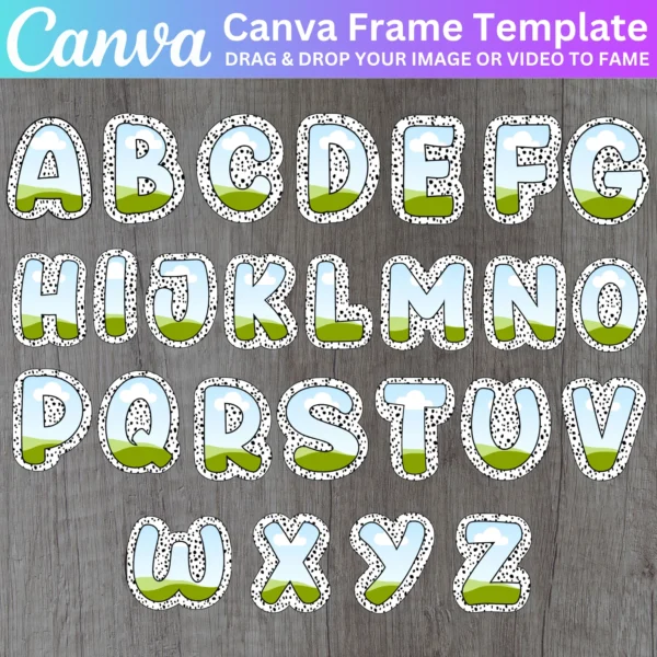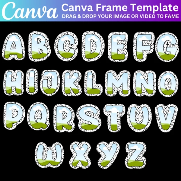 Create personalized birthday designs with the Canva Editable Alphabets template. This template includes A-Z letters and frames, perfect for designing unique birthday photo collages, alphabet storyboards, and custom decorations. Easily drag and drop your photos and text to personalize each letter and create a beautiful and meaningful design.