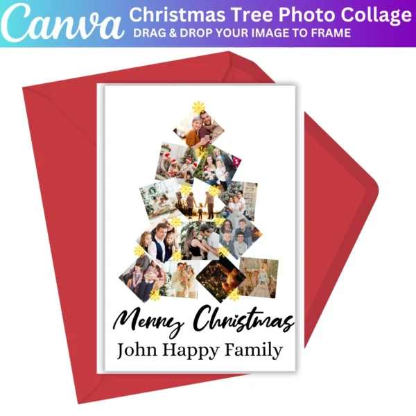 Celebrate the holiday season with the Christmas Family Tree Card Canva Template. This customizable template allows you to create a beautiful, modern minimalist Christmas card with a photo collage of your family tree. Perfect for sending holiday greetings or creating personalized keepsakes, this template is easy to edit and customize in Canva. Simply upload your photos, add your text, and create a festive card that captures the essence of family and the holiday spirit.