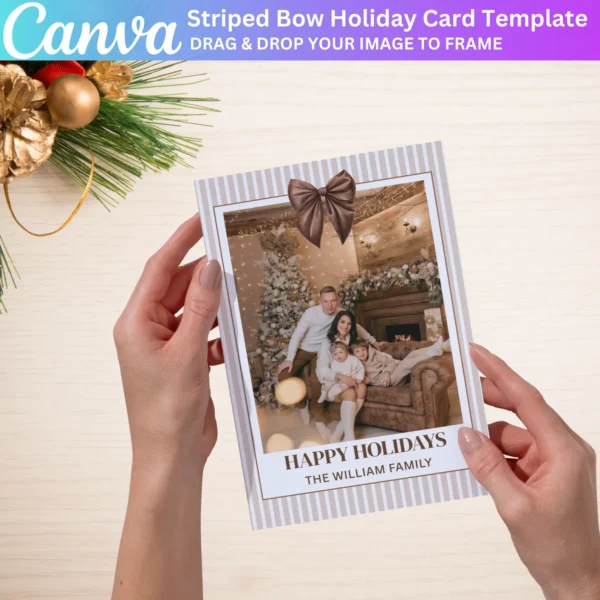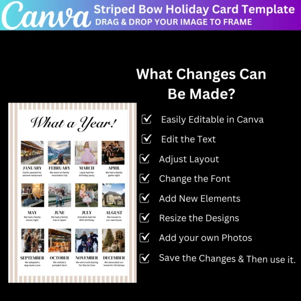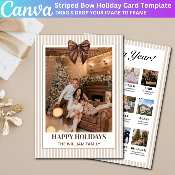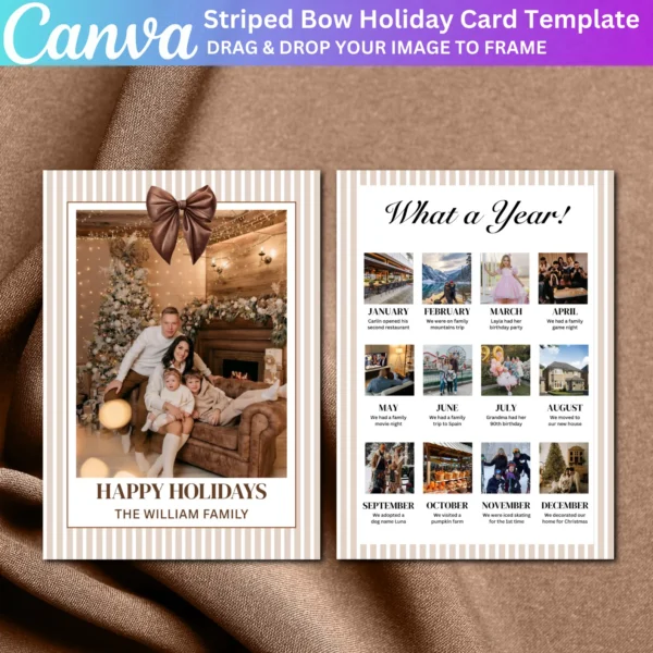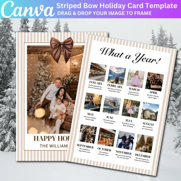 Perfect for family Christmas cards, this editable template allows you to create a beautiful and unique card to send to loved ones. Print it at home or use a professional service for high-quality results. A fun and creative way to reflect on the year’s memories!