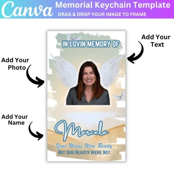 Honor the memory of a loved one with this editable Memorial Keychain Template. Customize it with a photo, name, or special message to create a heartfelt and meaningful memorial keepsake. This digital download offers easy customization, making it the perfect personalized gift for family, friends, or anyone looking to remember a loved one.