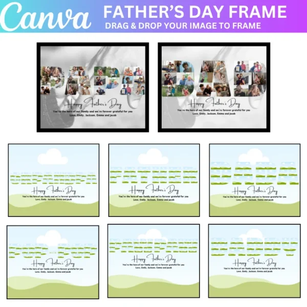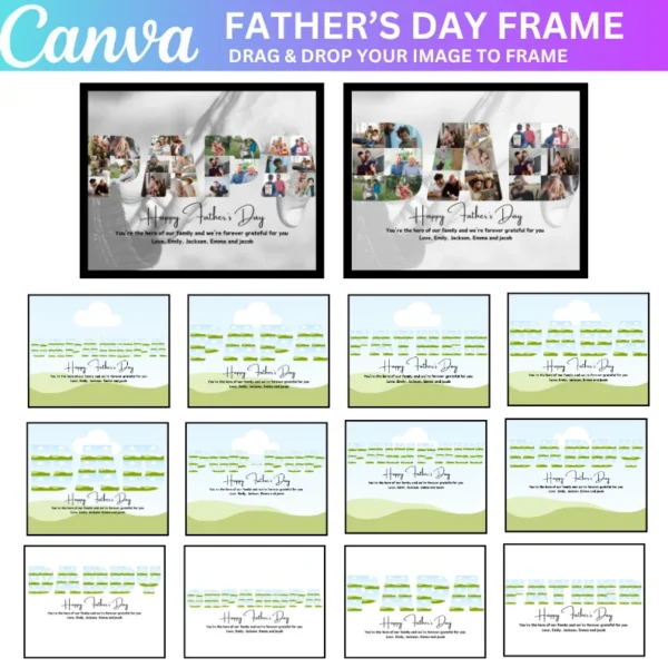 Create a one-of-a-kind gift with the Daddy Canva Editable Frame Template. This easy-to-use, editable template lets you design personalized photo frames for your dad, papa, or grandpa. Add your own images, special messages, and creative designs to make a beautiful Father’s Day gift, birthday present, or family keepsake. Whether for a new dad, grandpa, or someone special, this digital template provides everything you need to make a thoughtful, custom photo collage or print that captures cherished memories.