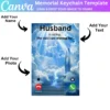 Celebrate the life and memory of your beloved husband with this editable Memorial Keychain Template. Customize it with a cherished photo, name, or special message to create a heartfelt tribute. This digital download allows you to easily personalize the design, making it the perfect keepsake or memorial gift.