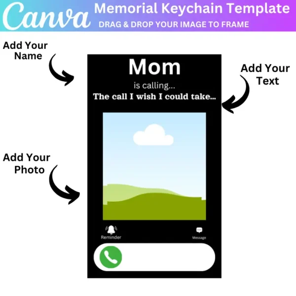 Create a heartfelt tribute with this editable Mom Memorial Keychain Template. Customize it with your own photo, text, and design elements to craft a beautiful and personal memorial gift. This digital download allows easy drag-and-drop editing, perfect for honoring the memory of a loved one in a unique and special way.