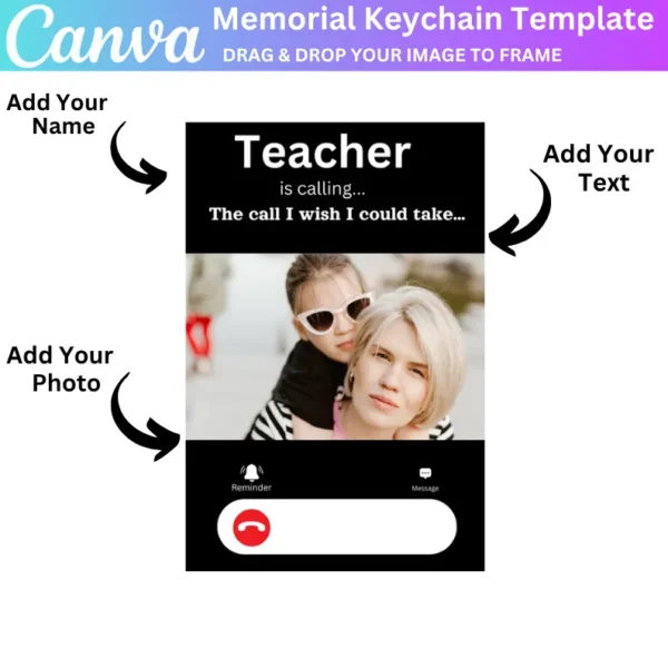 Celebrate and honor the memory of a beloved teacher with this customizable Memorial Keychain Template. Personalize it with the teacher’s name, photo, or special message to create a meaningful and unique tribute. This digital download allows for easy customization, making it the perfect memorial gift for students, colleagues, or family members.