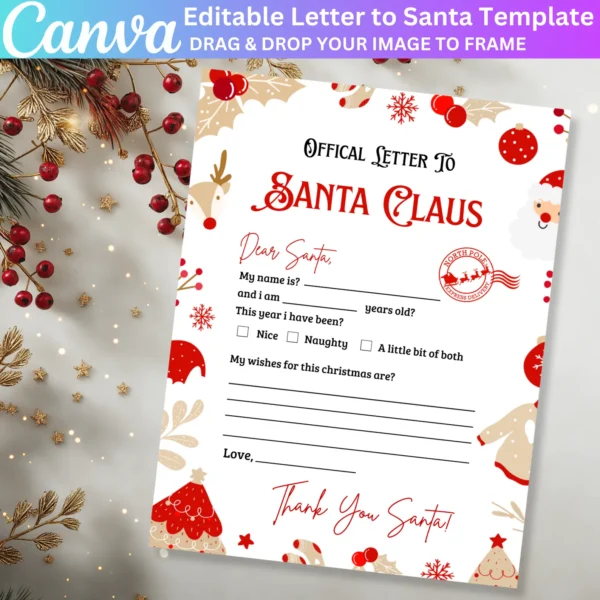 Letter To Santa Canva Printable Template