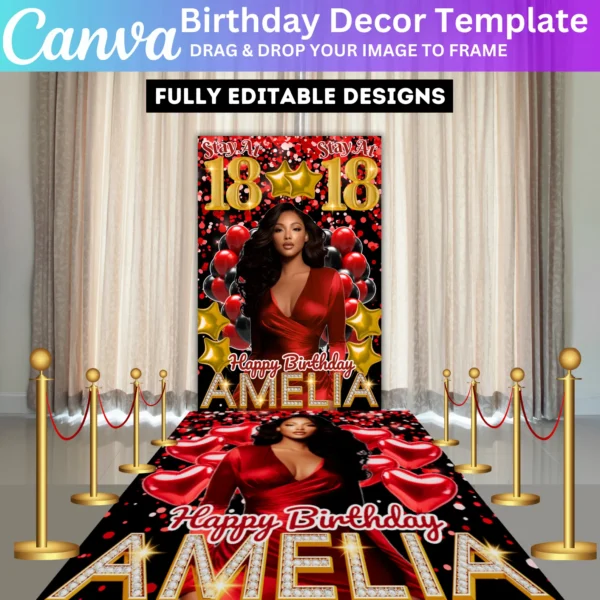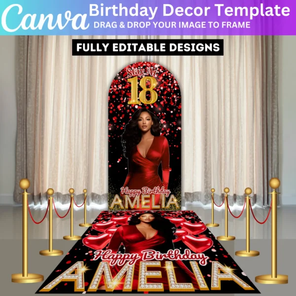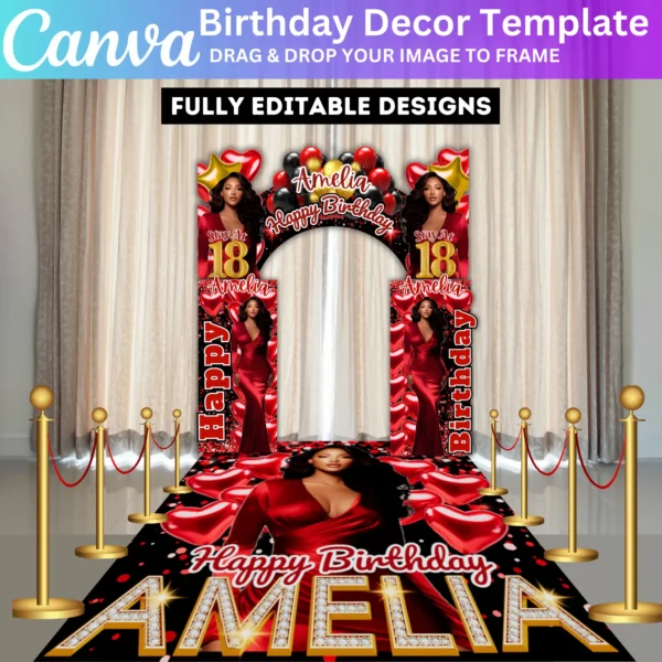Red Birthday Entrance Arch & Sign Template