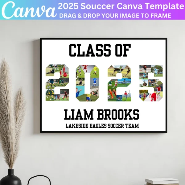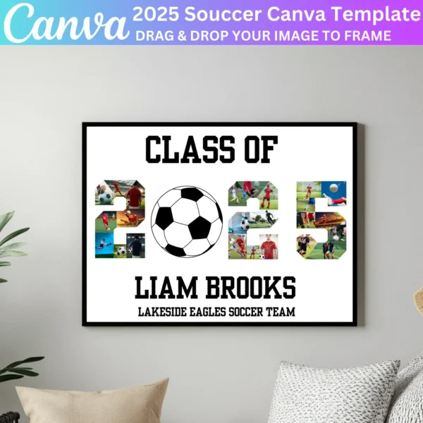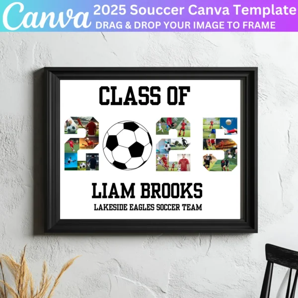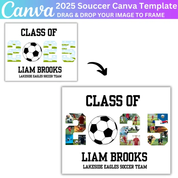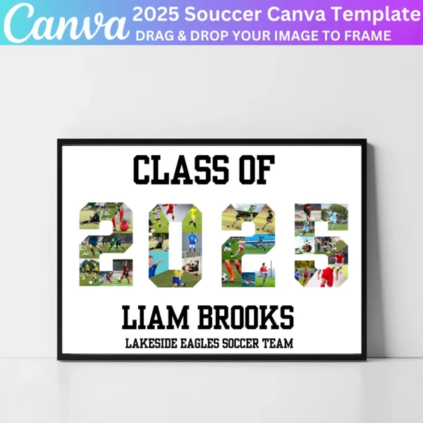This digital download provides a simple way to create a beautiful tribute. Whether for display during the event or kept as a memento, this soccer collage template offers a professional, personalized touch for your senior night celebration.