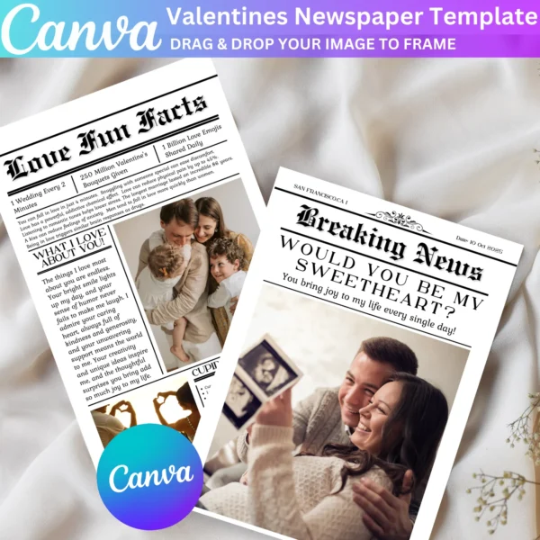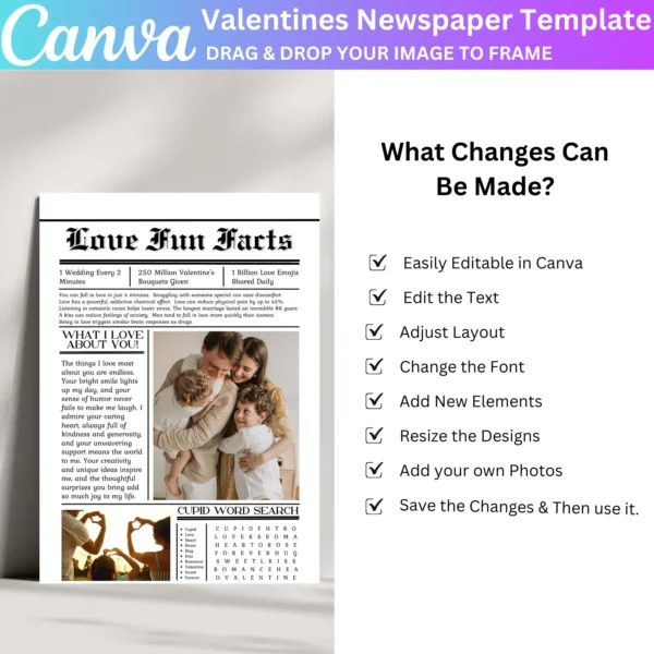 Valentines Day Newspaper Canva Editable Template