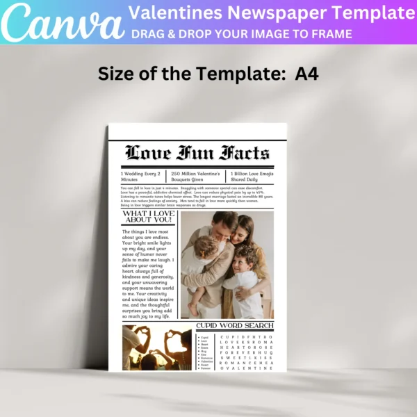 • High-resolution Valentines Day Newspaper Canva Editable Template (210×297 mm)