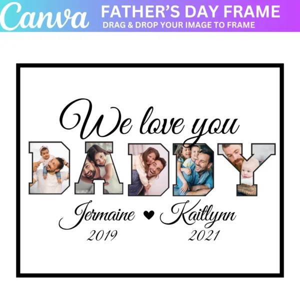 Show Dad just how much he means to you with the We Love You Daddy Canva Editable Template. This customizable template allows you to create a heartfelt photo collage, complete with space for your favorite memories and messages. Whether for Father’s Day, a birthday, or just to show appreciation, this editable template makes it easy to design a personalized daddy photo print or frame.